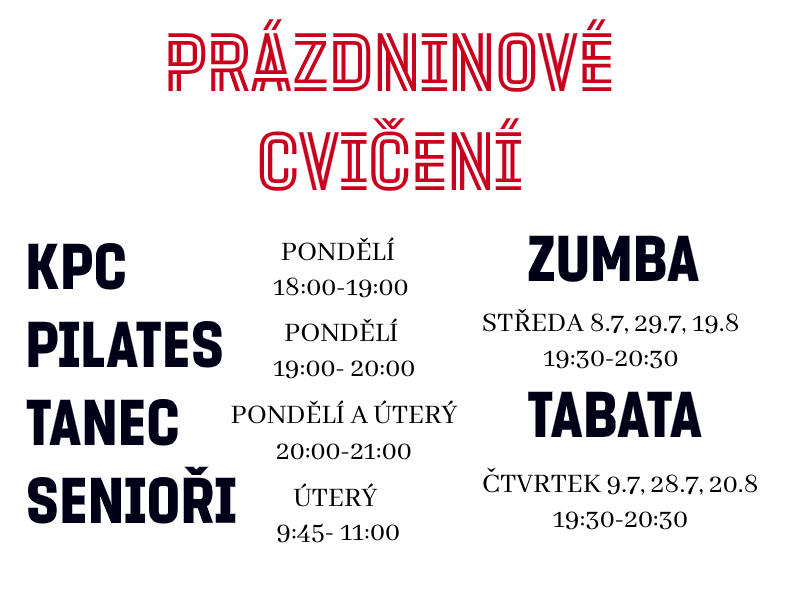 Během letních prázdnin se totiž nekonají žádná dětská cvičení a cvičení pro dospělé pouze v omezené míře.
