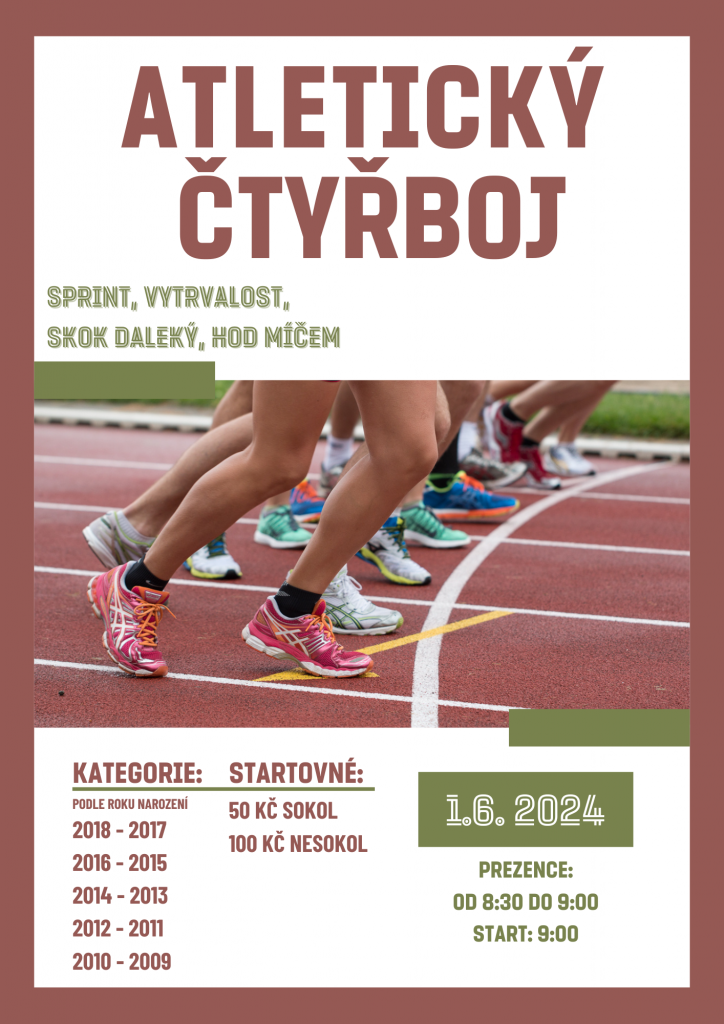 Atletický čtyřboj Zveřejněno v 30 května, 202430 května, 2024 od sokol.kralupy Přijď si už tuto sobotu změřit své síly v atletickém čtyřboji. Pro všechny děti narozené v letech 2009 – 2018 se budeme moc těšit.