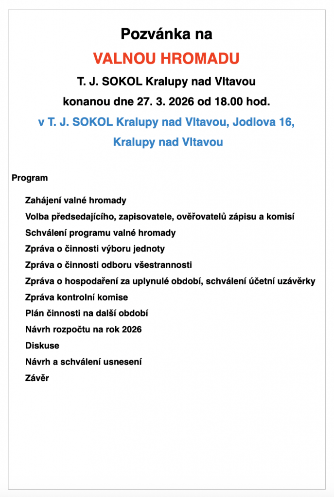Pozvánka na VALNOU HROMADU