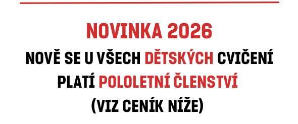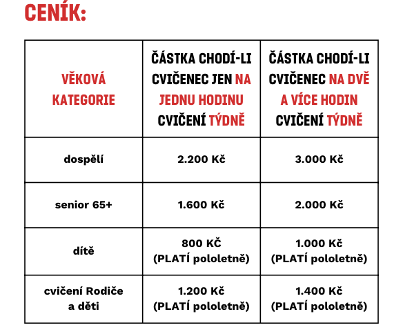 CENÍK PLATNÝ PRO NOVÉ CVIČENCE OD 01. 09. 2026 NA 2. POLOLETÍ ROKU 2026 níže